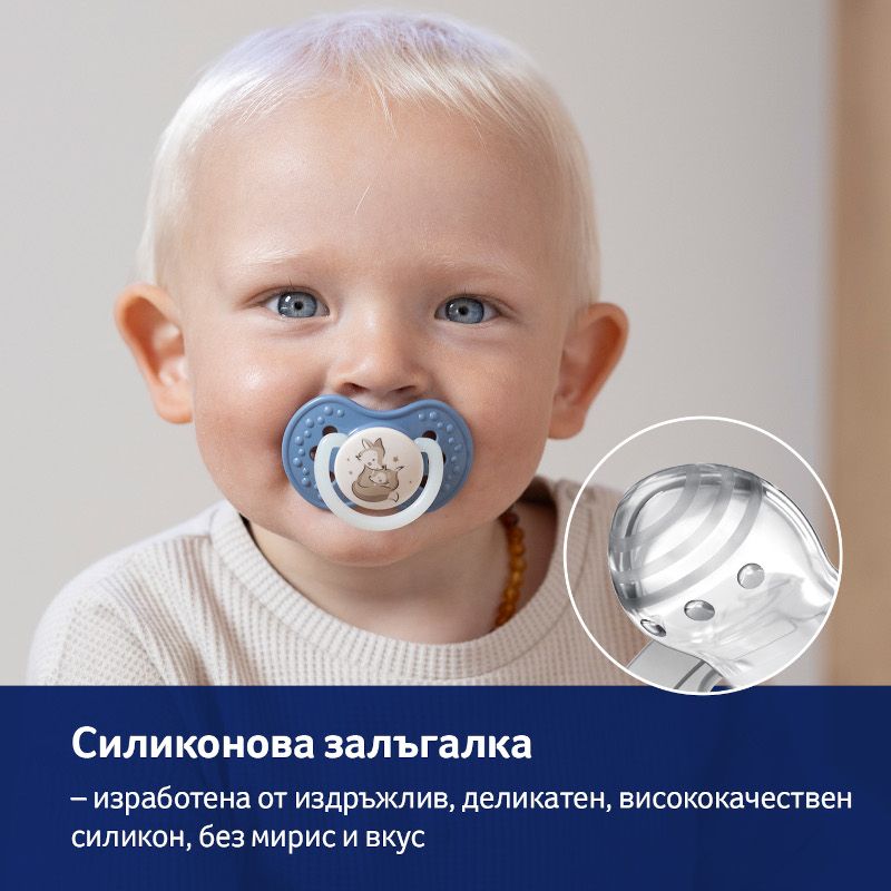 Деликатният силикон на залъгалката е без мирис и вкус, което е особено важно на този етап, когато детето е чувствително към външни стимули.