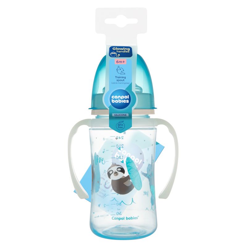 - Тренировъчната чаша Canpol babies е идеална за учене на самостоятелно пиене след 6-месечна възраст, благодарение на мекия си накрайник, който предотвратява разливането.