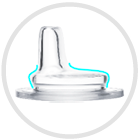 - Изключително мекият накрайник е изработен от деликатен силикон, безопасен за чувствителните венци на вашето дете. Формата му осигурява правилна опора за устните за по-голям комфорт на детето. Интуитивен е и наподобява пиене от шише, което позволява на детето Ви лесен и бърз преход от шише към чаша.