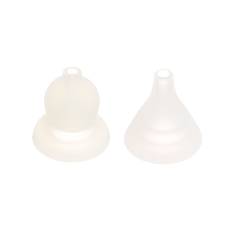 - Комплектът включва 2 сменяеми силиконови накрайника, съобразени с възрастта и нуждите на бебето – тесен накрайник, който може да се използва за малки деца или течен секрет, и по-широк накрайник, предназначен за по-големи деца или за използване с гъст секрет.