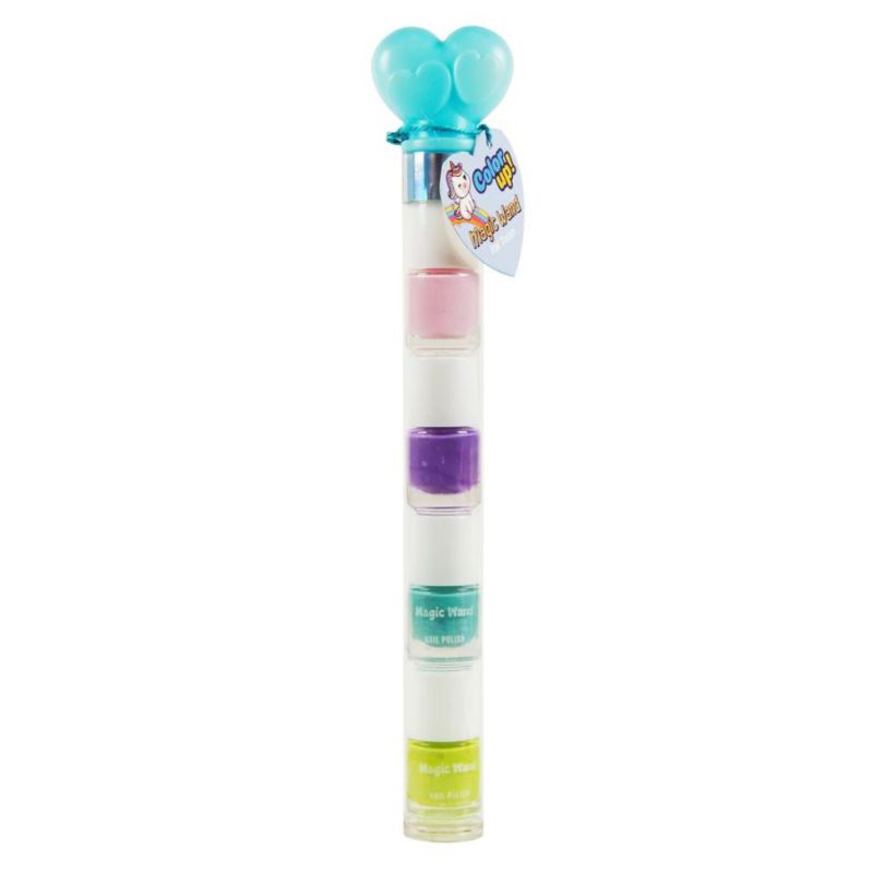 Magic Wand е забавен детски комплект с 4 цветни лака за нокти, подредени във висока прозрачна тубичка с капаче във формата на сърце. Компактният дизайн прави комплекта чудесен за подарък или пътуване, а ярките нюанси вдъхновяват креативност и настроение.
