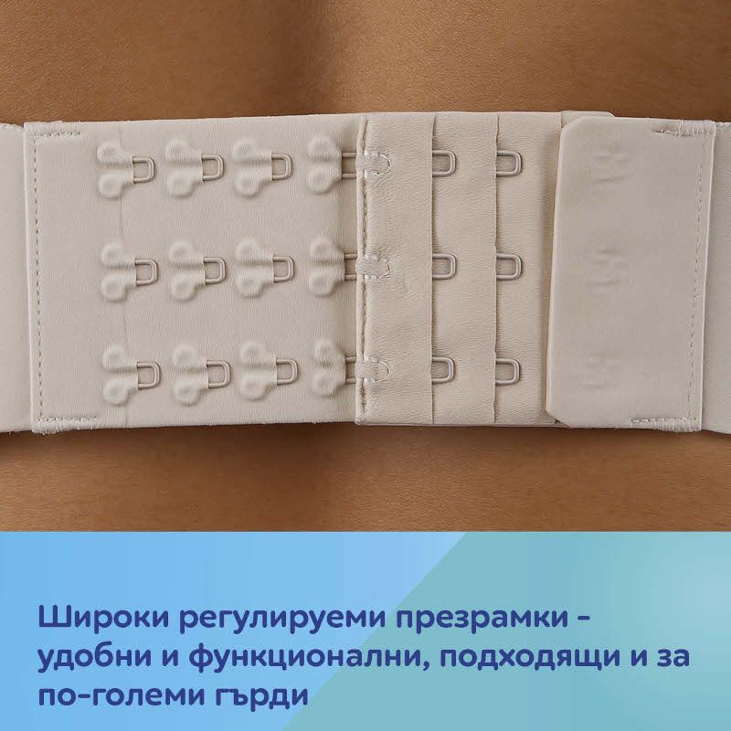 - Удобен и дискретен. Презрамките с клипс позволяват лесно отваряне на чашката с една ръка. Осигурява пълна 360° поддръжка и повдигане на бюста, гъвкаво прилягане и свобода на движението.