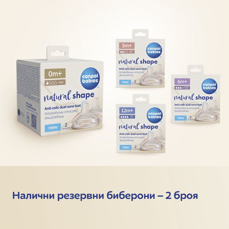 - Антиколик двузонов биберон съвместим с шишета Natural Shape на Canpol babies.