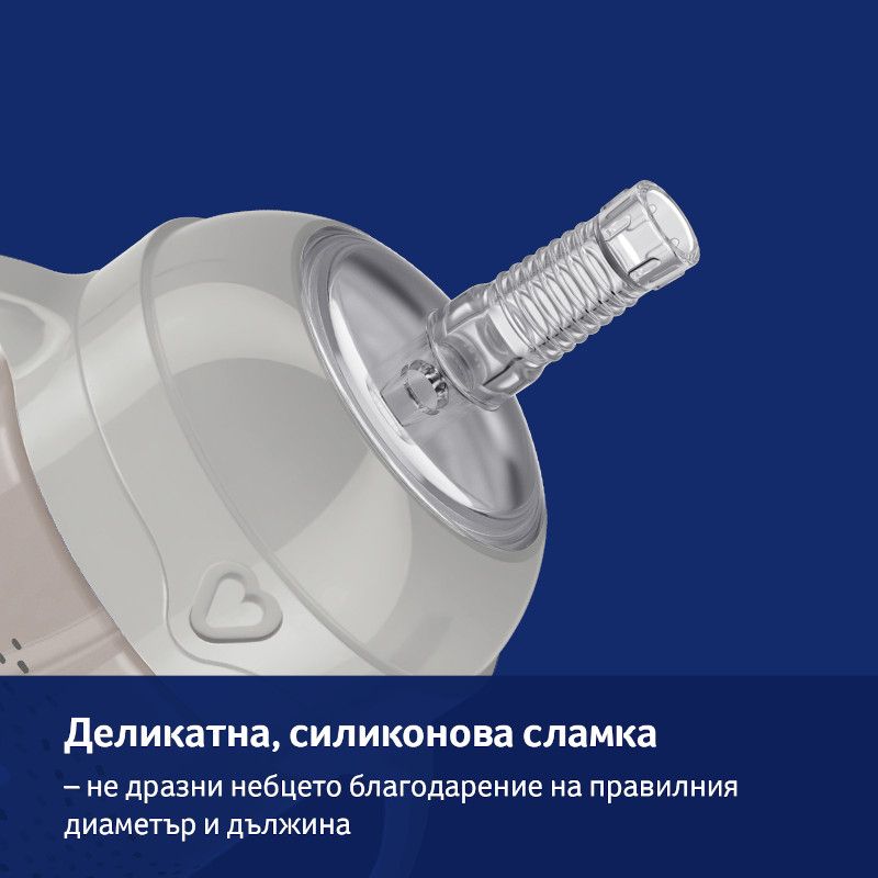 - Деликатната, гъвкава сламка с правилен диаметър и дължина не дразни небцето и е лесна за използване от бебе.