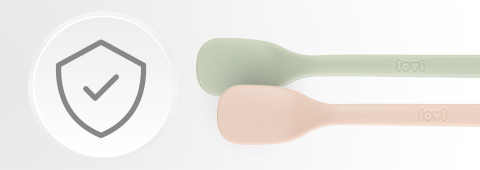 - Лъжичката за първо хранене LOVI е плитка, тясна и твърда, което я прави идеална за начало на разширяване на диетата. Тя има уникална форма, като логопедична шпатула, за да улесни детето да изтегля храна.