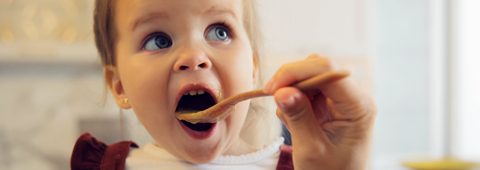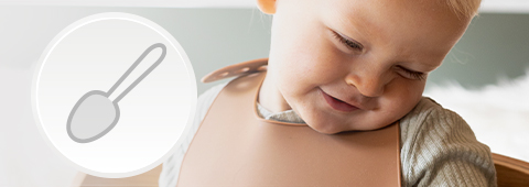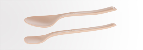 Лъжичката за първо хранене – улеснява приемането на храна от детето. Тя е плитка и тясна като логопедична шпатула, подходяща за най-малките деца.
